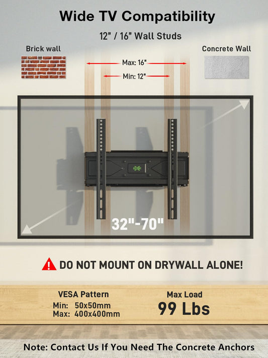 USX MOUNT Full Motion TV Wall Mount for Most 32-70 inch TVs up to 99 Lbs, Wall Mount TV Bracket with Articulating Swivel Tilting, TV Mount Fit 12" 16" Wood Studs, Max VESA 400x400mm, XMM903